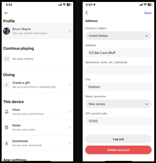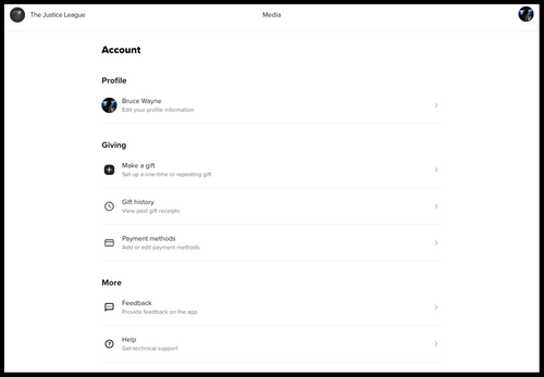 Once you're logged into your account, you'll be able to edit your profile, reset your password, view your gift history, manage your payment methods and gifts, or delete your account.